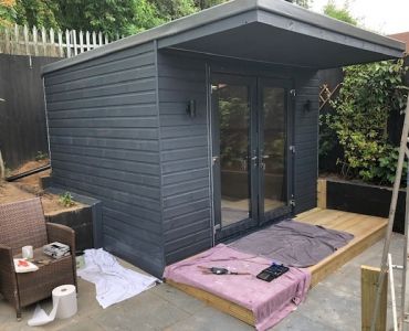 We met with the client and re-configured the garden to fit in a bespoke home office. We carried out the construction of the office to ensure it was well insulated for all year use, fit for the requirements of the customer and had an external canopy to sit and enjoy on the front. The office had spot lights, external up/down lights, power and data and a energy efficient heater.