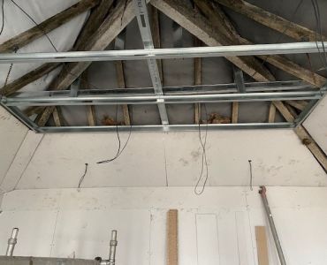 The ceiling was also studded, boarded and skimmed with a flat central section and chamferred sections to meet the walls.